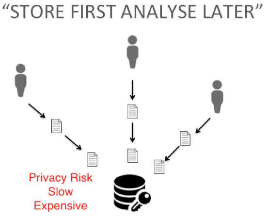 We feel the real culprit is a decades-old Business Intelligence practice which we refer to as the “store everything, analyse later” approach. Indeed, the standard workflow of a Business Intelligence unit involves storing everything about everyone in massive data warehouses and pulling reports at arbitrary points in time later to satisfy the appetite of the next internal Powerpoint presentation, or to help determine the next-best-action during a customer service call.